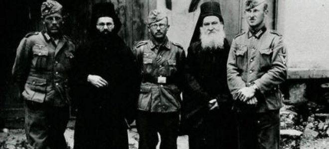 «Ο Μέρτεν (σ.σ. ο Μαξ Μέρτεν ήταν προϊστάμενος της Γερμανικής Διοικήσεως Μακεδονίας που συνελήφθη στα τέλη της δεκαετίας του '50 ως εγκληματίας πολέμου κρατήθηκε στις φυλακές Αβέρωφ αλλά τελικά δεν δικάστηκε, γεγονός που προκάλεσε τότε τεράστιες αντιδράσεις) ισχυρίστηκε ότι με δική του υπόδειξη η Γερμανική Στρατιωτική Αστυνομία δεν επέτρεψε στον υπεύθυνο της Sonderstab Rosenberg την είσοδό του στο Άγιον Όρος και ότι με τον τρόπο αυτό ματαιώθηκαν τα σχέδια της υπηρεσίας αυτής.