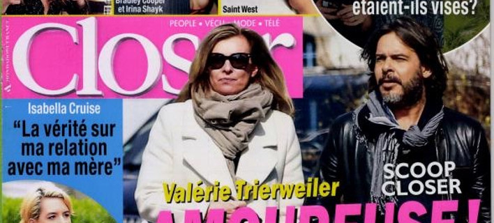 Η πρώην σύντροφος του Φρανσουά Ολάντ "συνελήφθη" να κυκλοφορεί χεράκι χεράκι με έναν νεαρότερο, αρρενωπό και μουσάτο άνδρα και έγινε εξώφυλλο στο περιοδικό Closer, το ίδιο εκείνο περιοδικό, δηλαδή που είχε αποκαλύψει τον έρωτα του Γάλλου προέδρου με την ηθοποιό Ζιλί Γκαγιέ. Τίτλος στο εξώφυλλο του περιοδικού «Η Βαλερί ερωτευμένη».