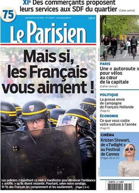 Συνεχίζονται οι εκδηλώσεις διαμαρτυρίας κατά της "μεταρρύθμισης" των εργασιακών σχέσεων που ο άθλιος Ολάντ προωθεί με ...Προεδρικό Διάταγμα!!! Σας θυμίζει κάτι από Ελλαδιστάν ;;; Στη φωτό : - διαδηλώνουν και οι Γάλλοι αστυνομικοί κατά του Ολάντ